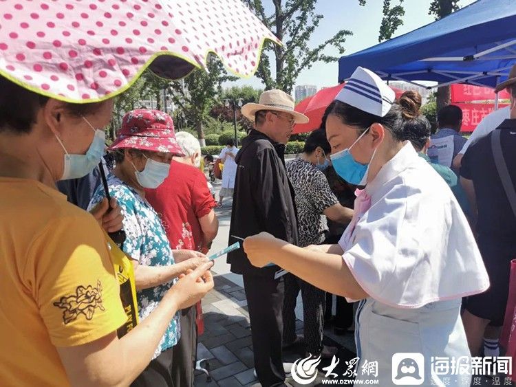 在庆祝中国共产党成立101周年之际,7月8日枣庄市胸科医院联合滕州市荆河社区卫生服务中心、滕州市疾控中心在荆河社区九州清晏广场开展 “红色七月义诊科普 医路同行”,党员志愿者义诊科普服务活动。